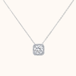 The Angelica Necklace is designed for those who love classic elegance with a modern, radiant twist. Featuring a brilliant cushion-cut centre stone framed by a halo of shimmering accents, this delicate pendant captures the light beautifully from every angle. Suspended from a fine, polished chain, it offers a luxurious yet understated sparkle that enhances any look.