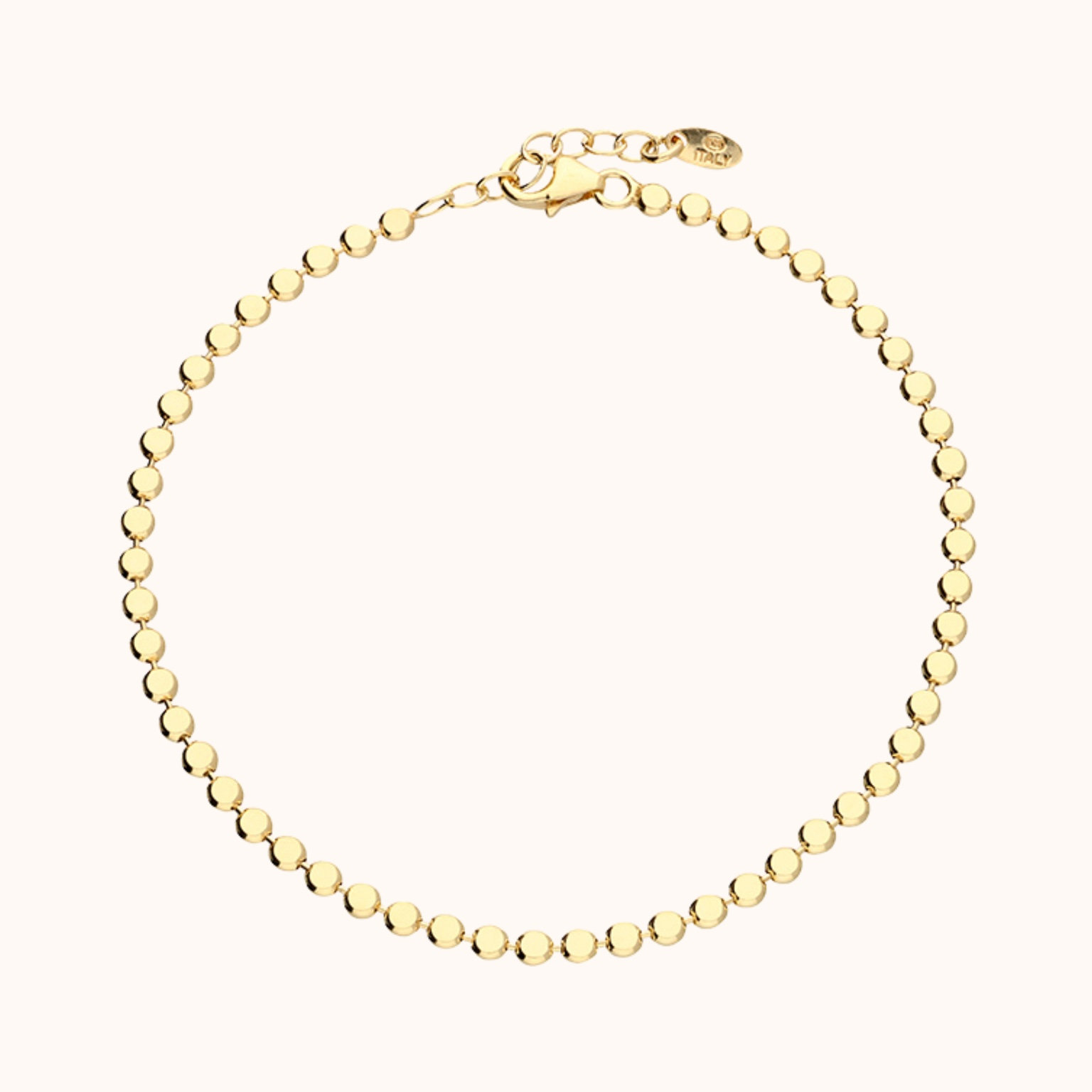 Romy is your delicate little hint of shine, the bracelet you reach for when you want something dainty that still catches the light beautifully. Tiny polished discs sit neatly around your wrist, creating a soft, shimmering line that feels elegant without ever stealing the show.