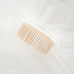 Handmade to order, the Charlotte Veil is crafted from soft Italian tulle and finished as a single tier with no blusher, gathered at the comb for a touch of fullness through the back. The length can be customised to suit your gown and personal style, whether you prefer a shorter, playful look or a sweeping, more traditional veil. Charlotte is available in four soft shades, so you can choose the closest match to your dress, and you can select either a gold or silver comb to complement your jewellery and hair accessories. By default, Charlotte is a plain veil with a beautifully clean edge, but pearls, sparkle or delicate flowers can be added if you would like to introduce a little more detail. Soft, versatile and quietly romantic, it is a veil that will sit beautifully alongside almost any bridal look.