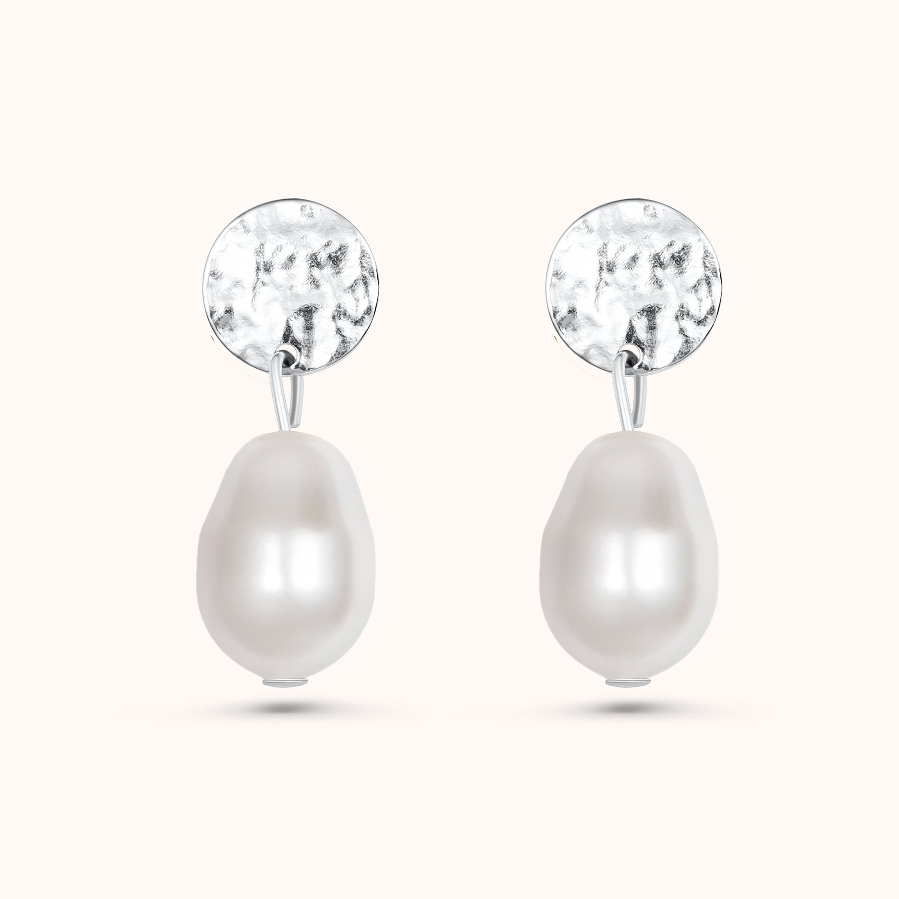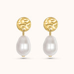 Our beautiful Brogan earrings are made from a single freshwater pearl hanging elegantly from a matte gold or silver hammered disc. These earrings can be worn as part of your everyday jewellery or they're perfect for a special occasion or gift.
