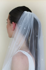 Made from the softest Italian tulle and adorned with Swarovski flatback pearls, 'Charlotte With Pearl' is both subtle and luxurious. With clusters of little pearls all over, the detail in our Charlotte Pearl veil is simply stunning.