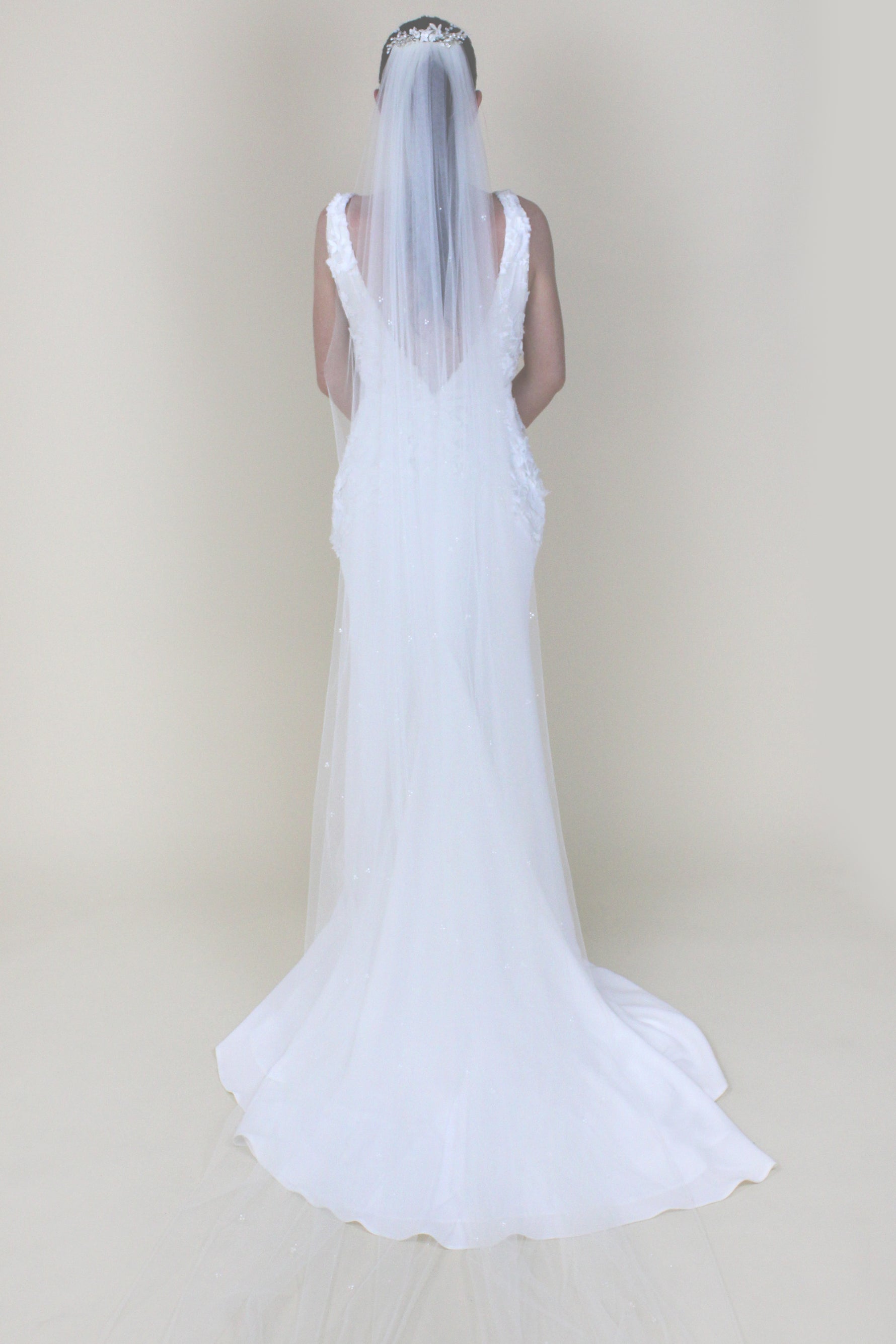 She is available in half-width and full-width sizes. If you are after a slightly slimmer and lighter veil the half-width is the one for you - images 1 and 2 are our half-width size.