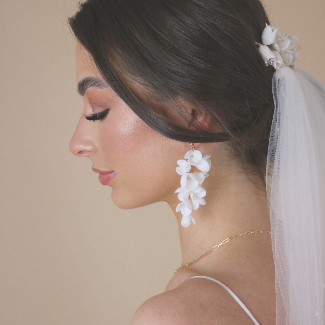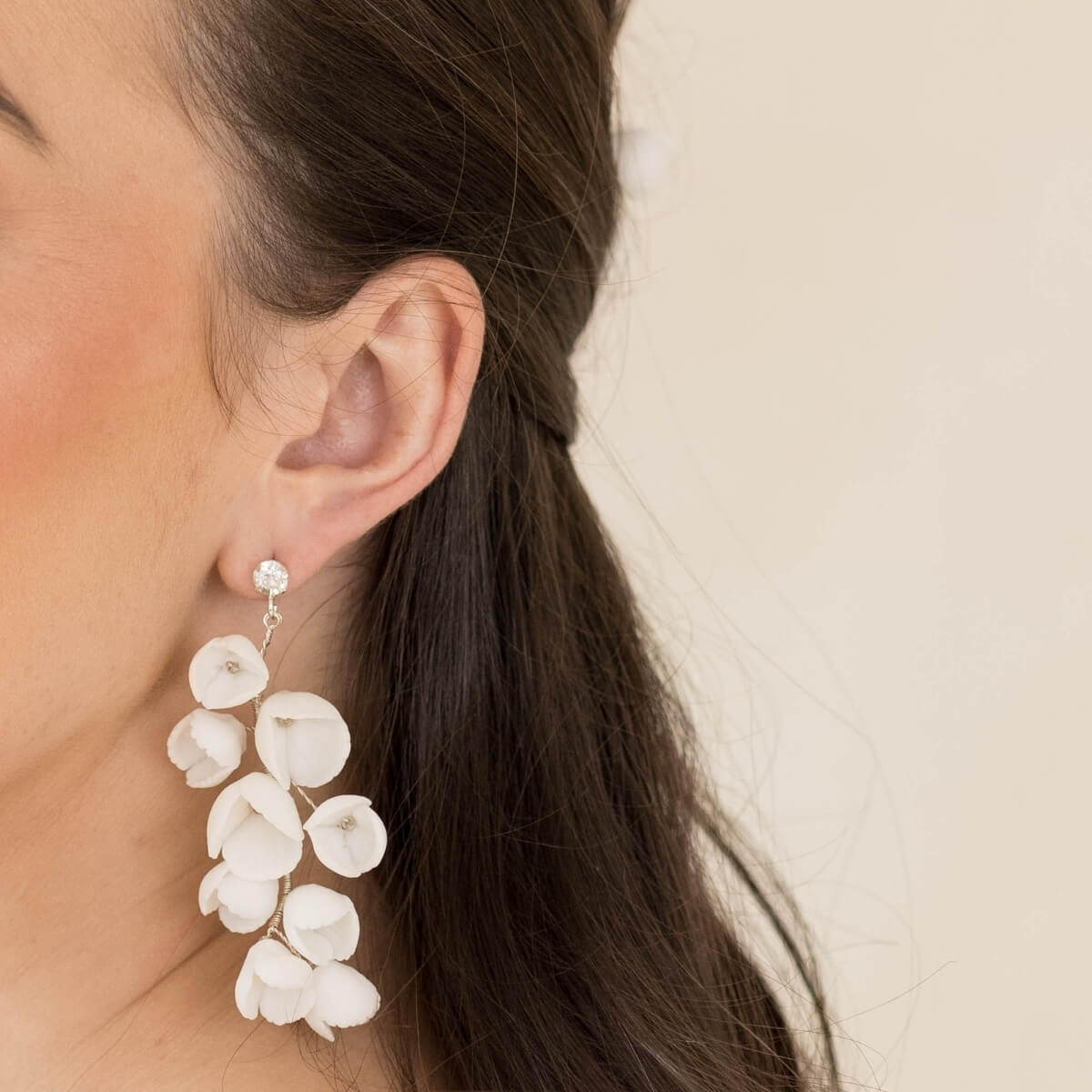 Our beautiful floral Petra earrings are here to make a statement. These stunning handcrafted earrings are the perfect accessory for your wedding day.
